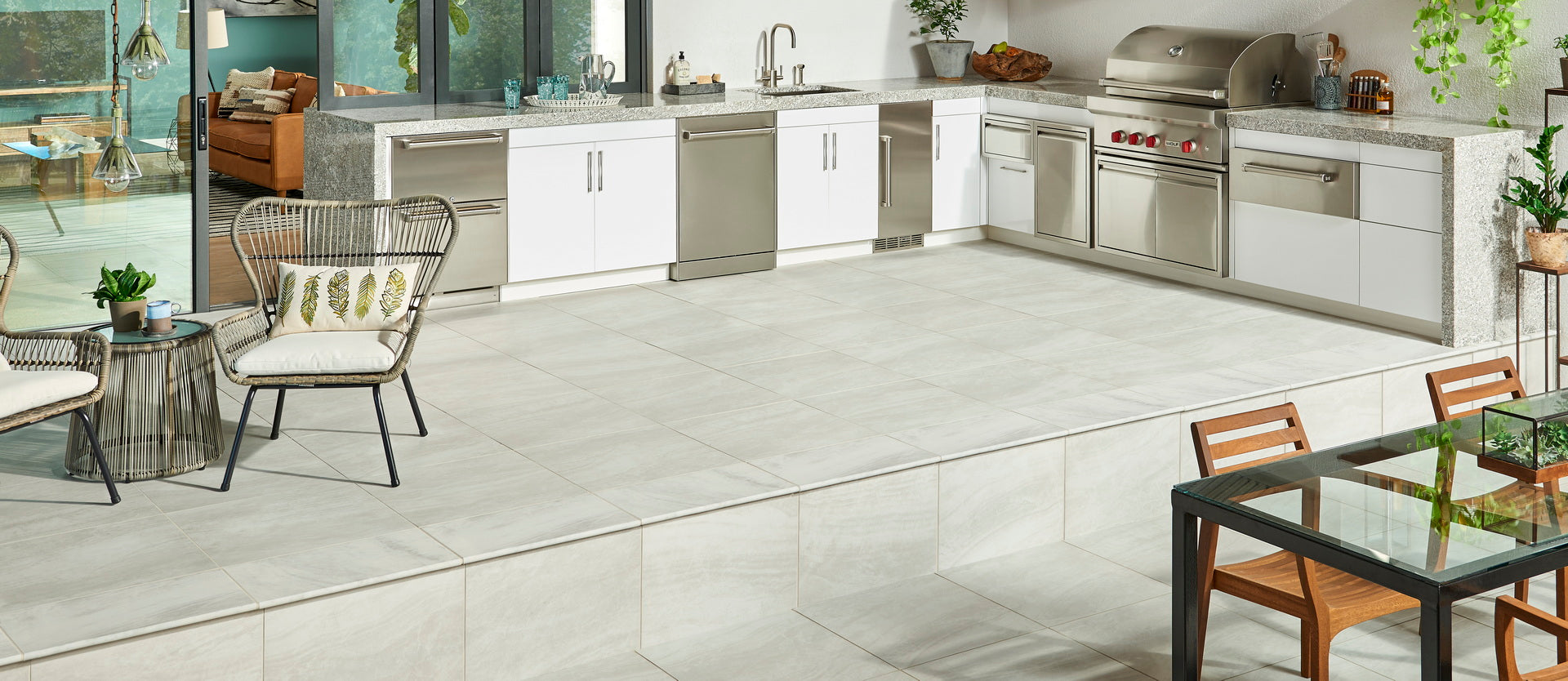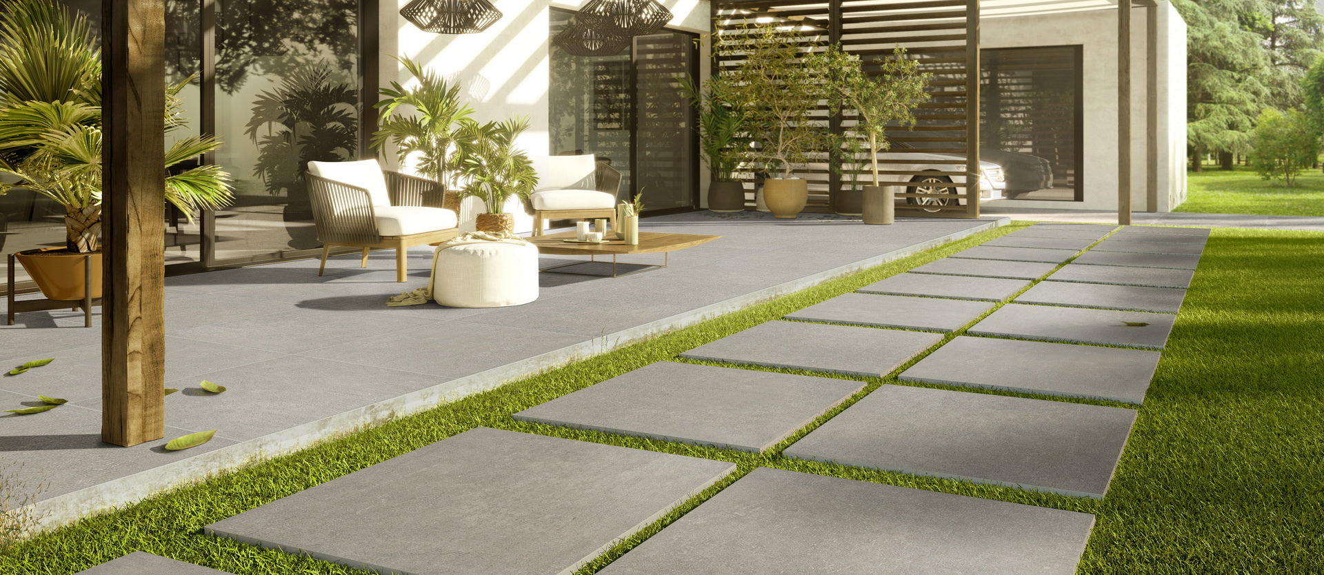 Available in various colors, sizes, and patterns, Arterra® Porcelain Pavers merge the beauty of natural stone with easy upkeep. At just ¾" thick, they boast strong impact resistance and can be used for both pedestrian and light vehicular traffic when properly installed. Transform your outdoor space with worry-free elegance!