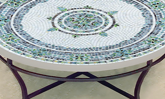 Experience KNF Neille Olson, renowned for exquisitely handcrafted mosaic tables featuring iridescent waves of color, hand-cut stained glass, marble, and durable proprietary stone blends. Combining timeless artistry, elevate your outdoor space with elegance and lasting beauty.