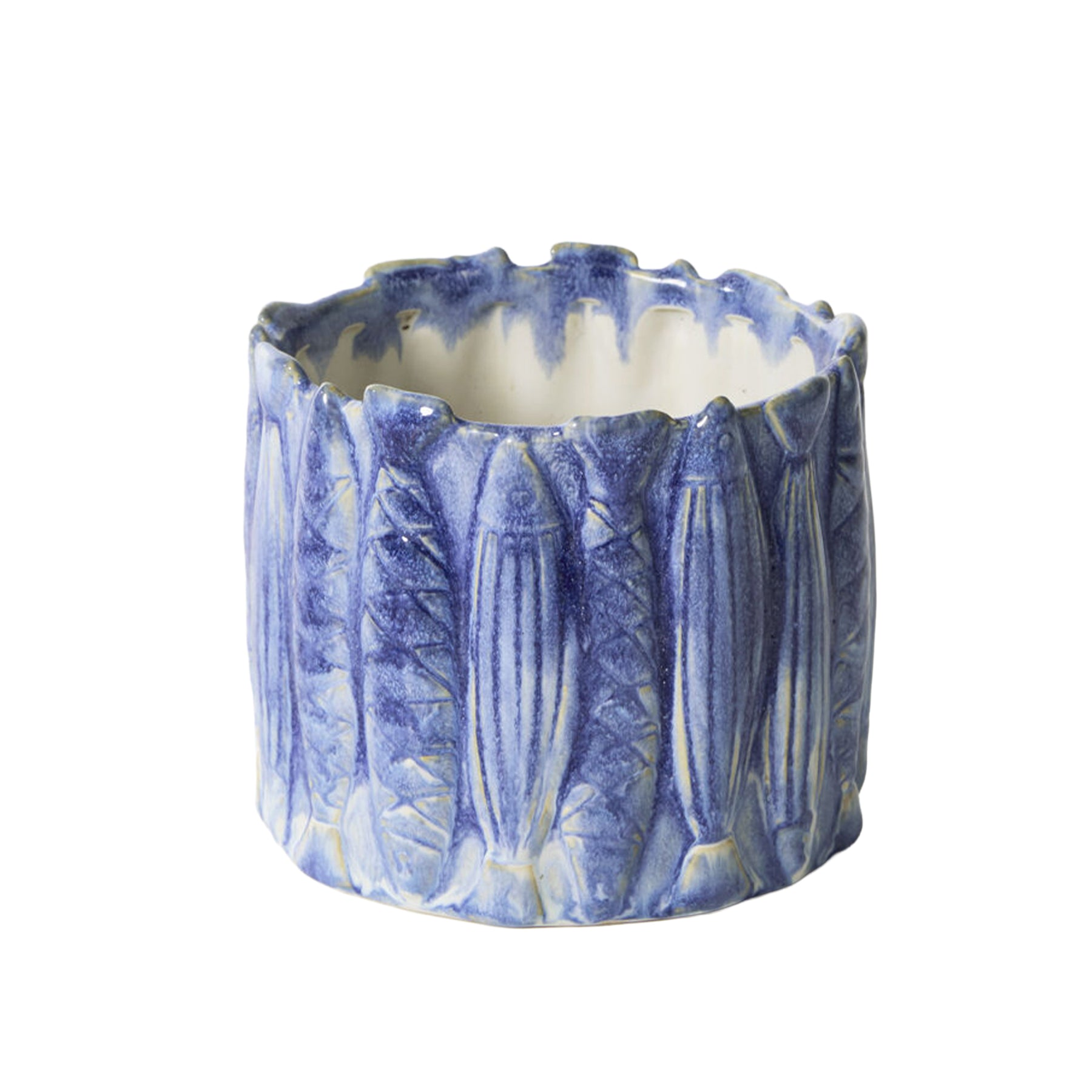 Delightfully playful and covered with dimensional hand painted sardines, the Amalfi Pot is a fresh vessel for a drop in plant, floral arrangement, or even as a desk accessory.