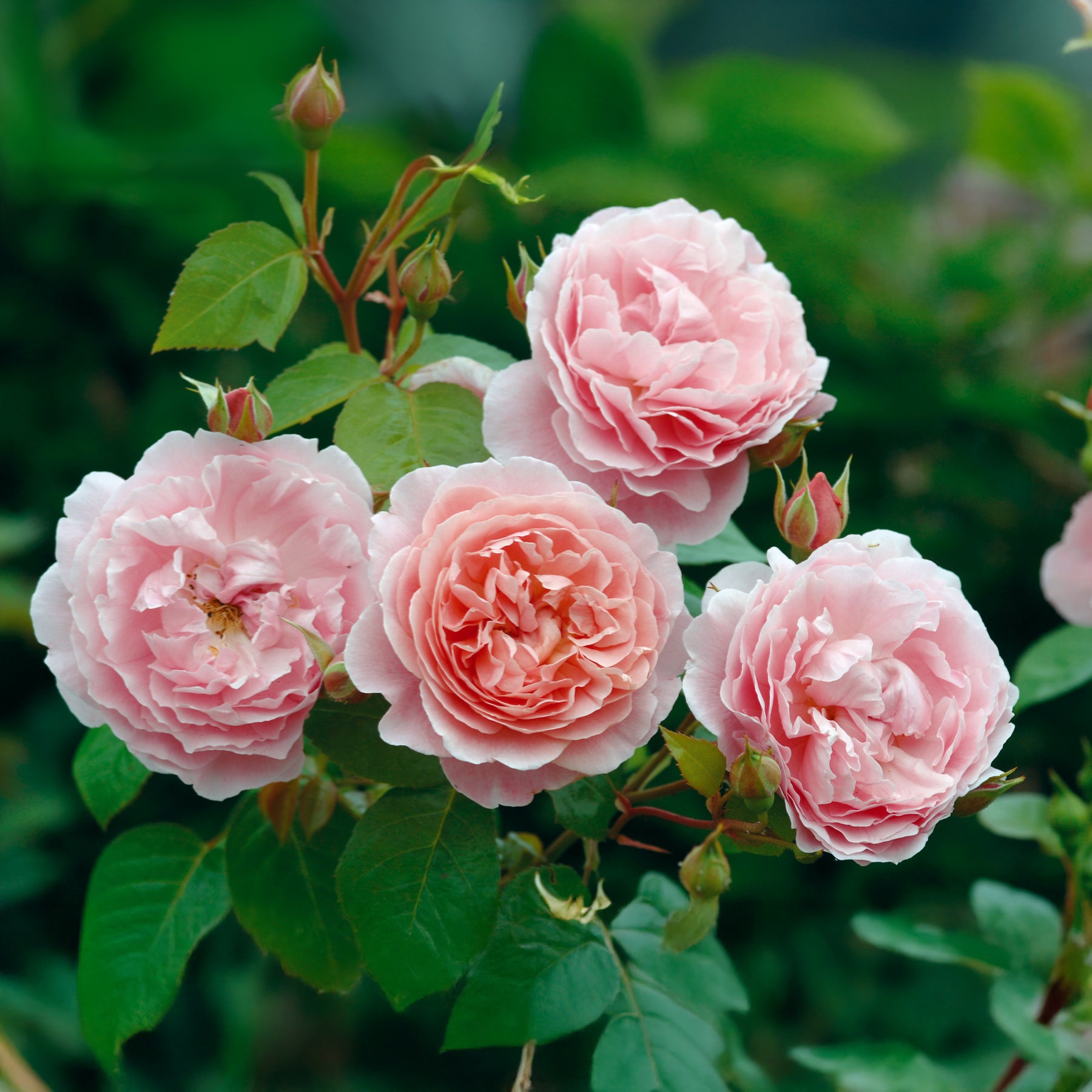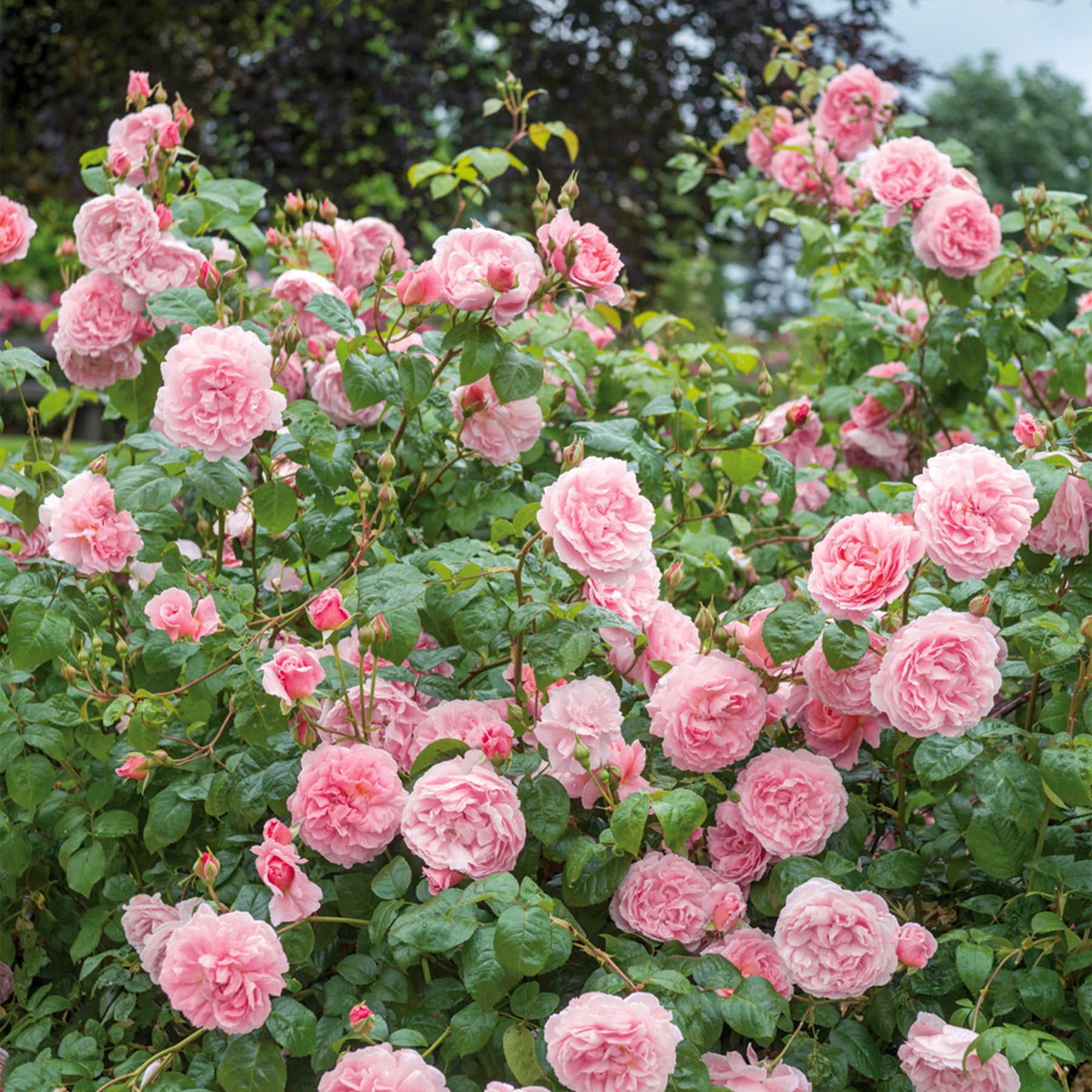Beautiful at all stages, bearing small clusters of large, mid pink, cupped rosettes. They have a strong, delicious myrrh and heather honey fragrance. The arching branches are clothed in glossy, dark foliage. Named after the gothic revival house in Twickenham, London, built by Horace Walpole.