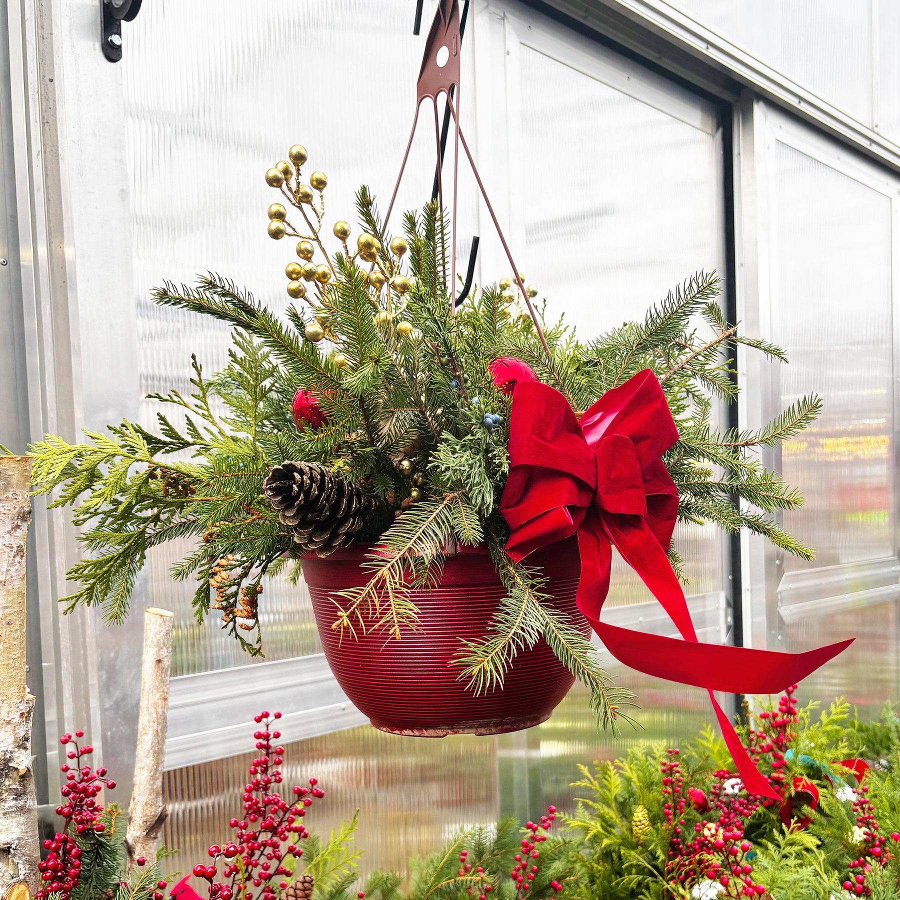 Refresh your home's exterior with a Gasper Holiday Hanging Basket. We combine fresh greens with seasonal and holiday accents for a traditional and festive look you'll love. Designs vary and can be customized to match your other decor. Available in multiple sizes starting at $49.99.