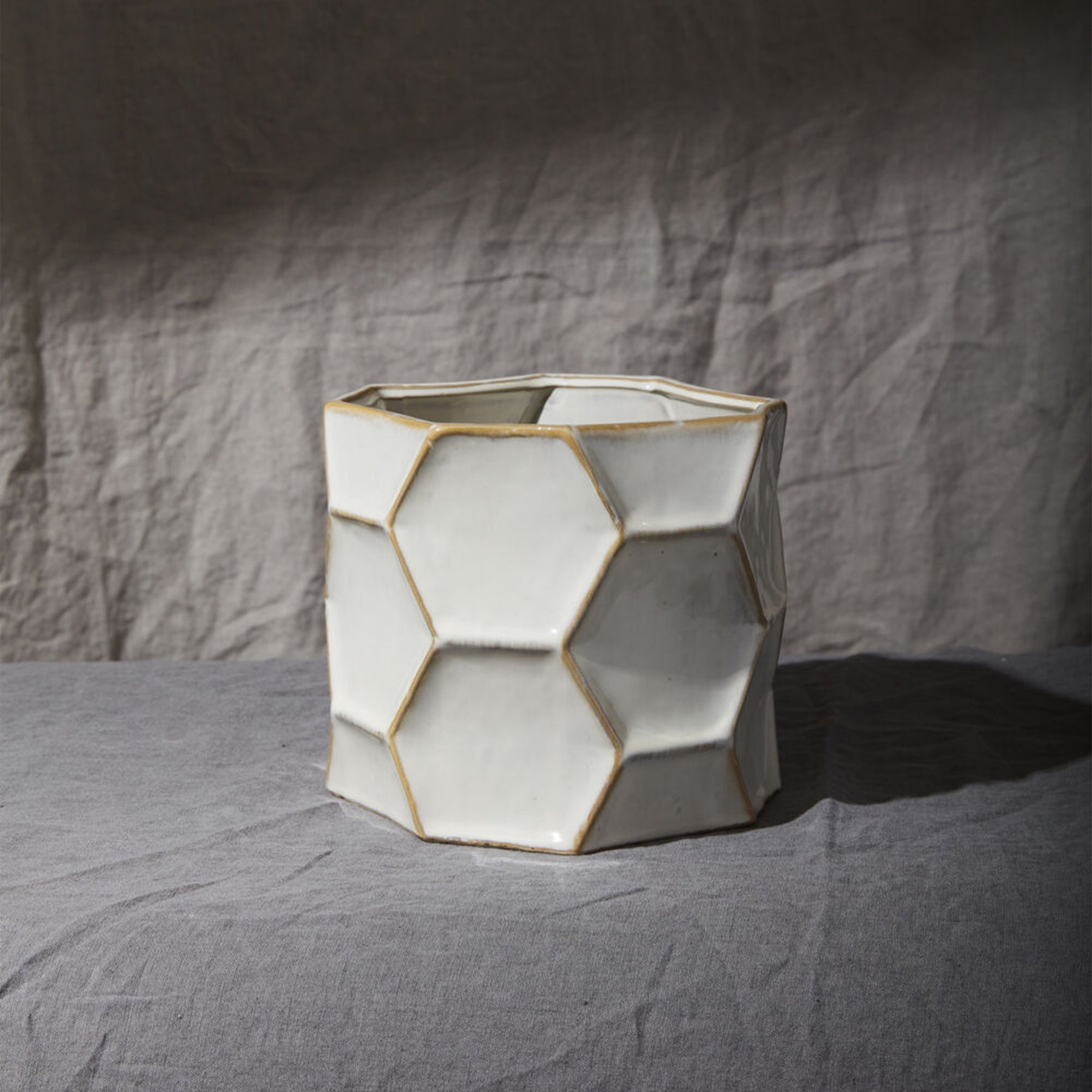 Elevate your home with the Jabi Pot – a neutral pot with a modern, hexagonal design in a calming shade of off-white. Made of ceramic and watertight, it’s perfect for displaying any and all floral arrangements.