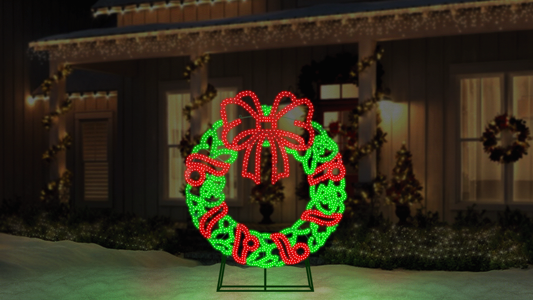 This Jumbo Hi-Vibrant Wreath LED Light Display by LEDUp features: