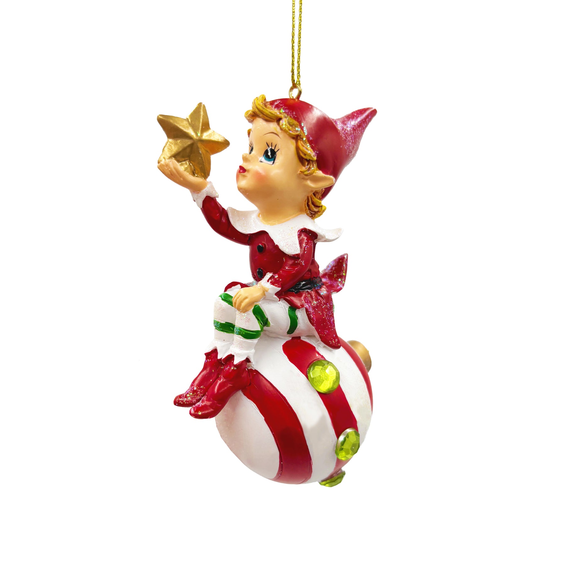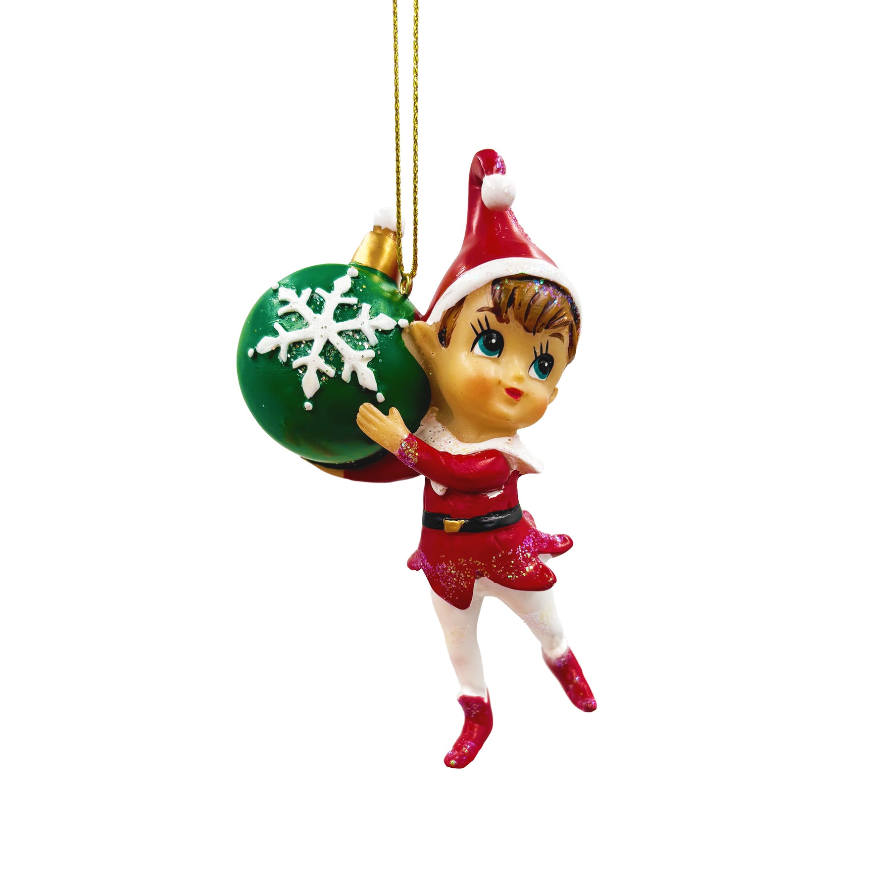 Available in three styles: Elf Holding Ornament, Elf With Candy Cane, Elf Sitting On Ornament.
